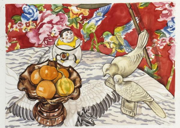 Aviary watercolor and charcoal on paper 22" by 30" Sold